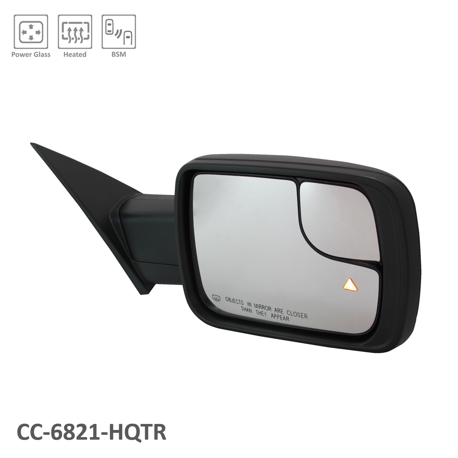 MIRROR, RH (PASSENGER SIDE)- TEXTURED BLACK- POWER- HEATED- W/O SIGNAL- W/ BLINDSPOT- W/O CAMERA- W/ TEMPERATURE SENSOR- STANDARD TYPE- CODE GUK